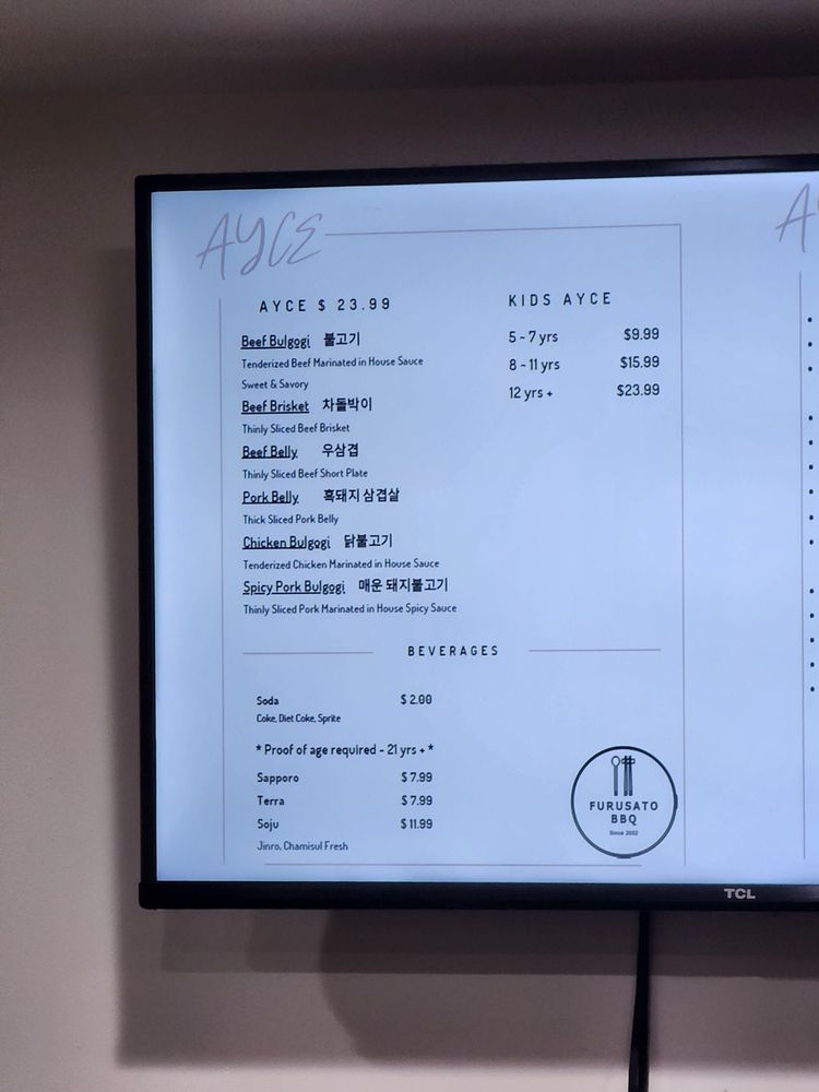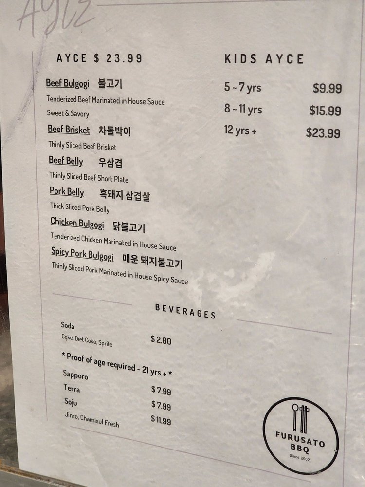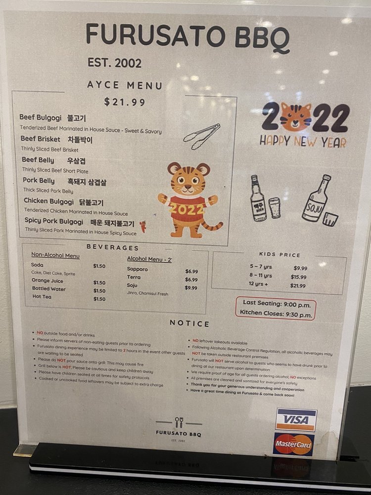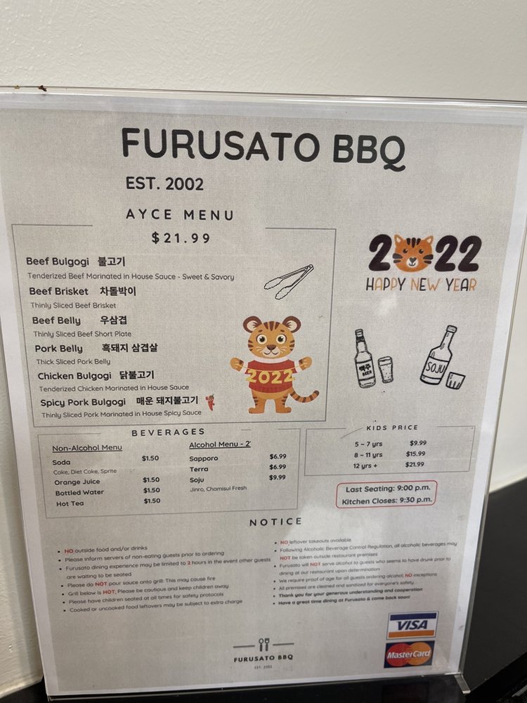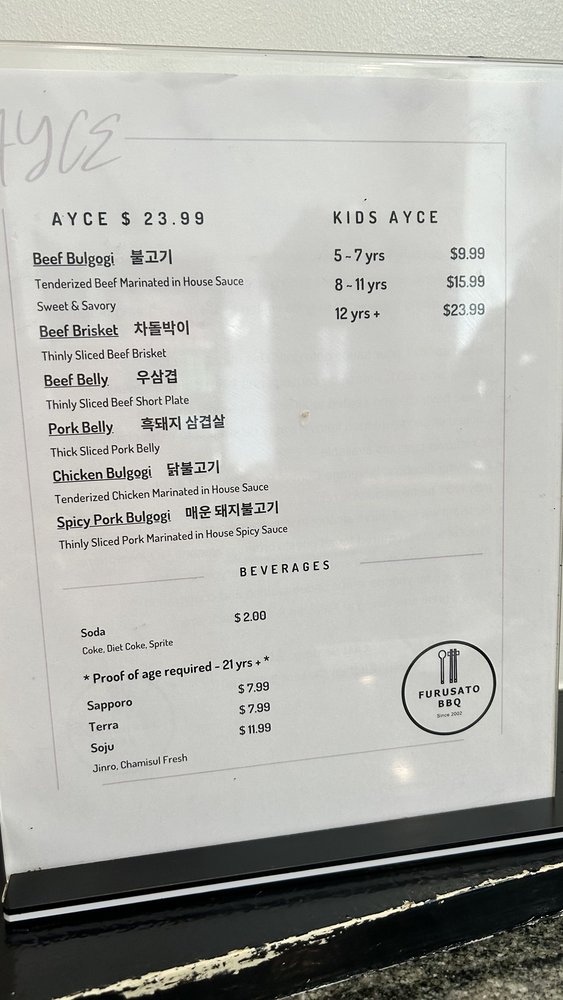Welcome to Furusato BBQ, a Korean barbeque gem located in Gardena, CA. Known for its affordable all-you-can-eat menu starting at $23.99, this spot offers a variety of meat options such as beef brisket, pork belly, chicken bulgogi, and more. Customers praise the simple yet delicious selections and the recent improvements in quality and variety. With a chill ambiance and attentive service, Furusato BBQ stands out from the crowded KBBQ scene, providing a more relaxed dining experience. From convenient location to ample parking options, this place is perfect for a quick bite or a fun night out with friends. Whether you're a long-time fan or a first-time visitor, prepare to be impressed by the love shown in the food, service, and overall experience at Furusato BBQ.